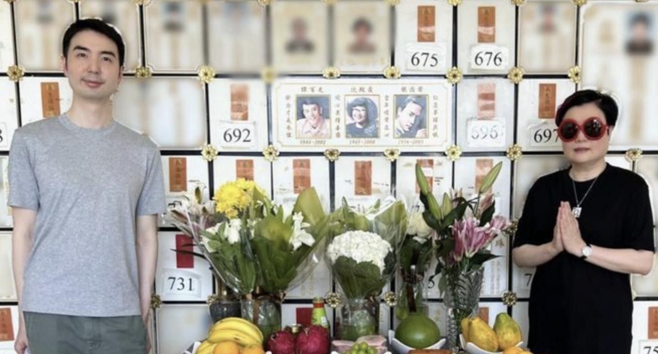 25. 翁静晶公开的照片显示,墓龛内部只剩揉成一团的佛教经文和一本纪念册,甚至连他荣获金像奖终身成就奖的奖牌复制品都被盗走。